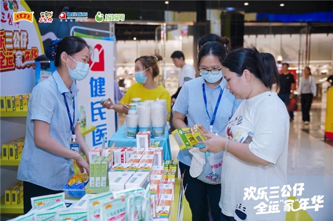 作为专注儿童用药领域超过30年的知名品牌,三公仔在活动现场设立了品牌互动区,“三公仔小儿七星茶颗粒”吸引了众多家长的目光。作为合作伙伴,健民医药依托丰富的药学服务经验,为家长们提供专业的健康咨询。